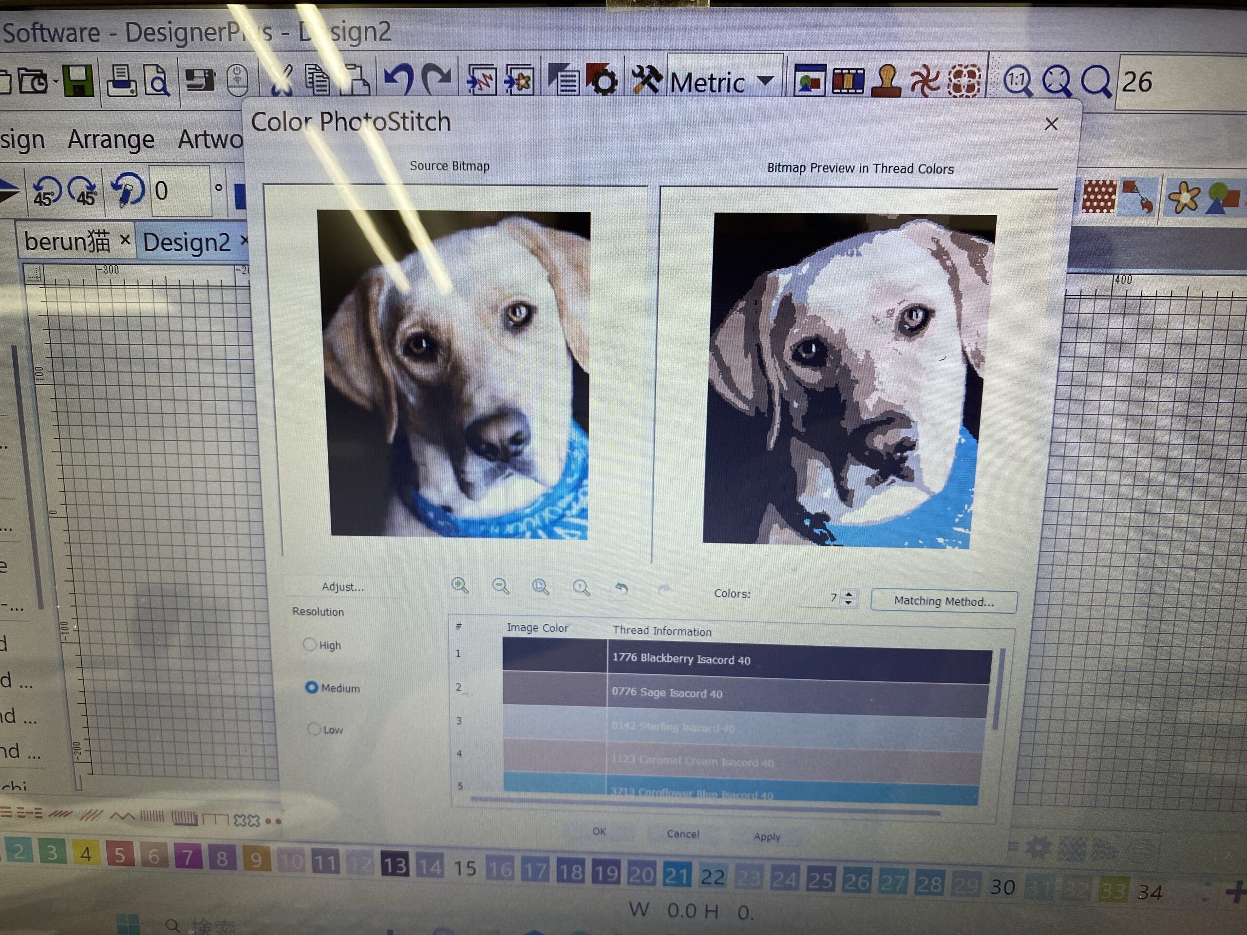 ベルニナ刺繍ソフトV9を使い 犬の刺しゅうを作ってみました