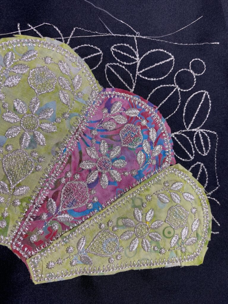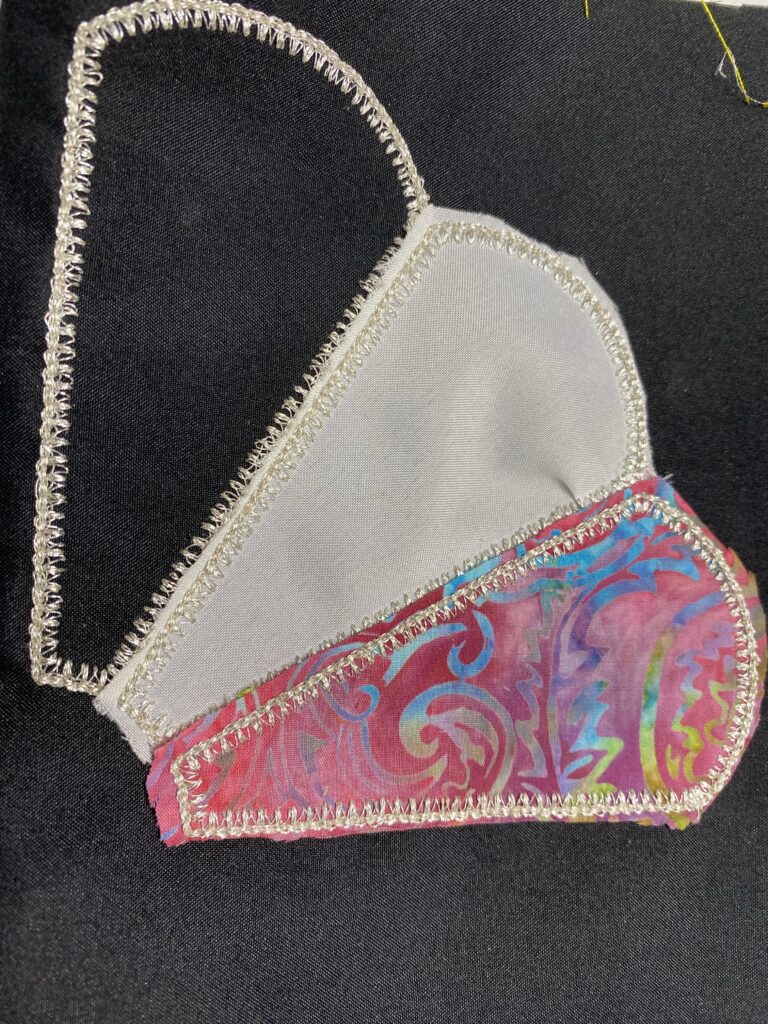 その上に布を置いて ランニングステッチ wステッチなど 自分の好みのスッテチで回りを縫います