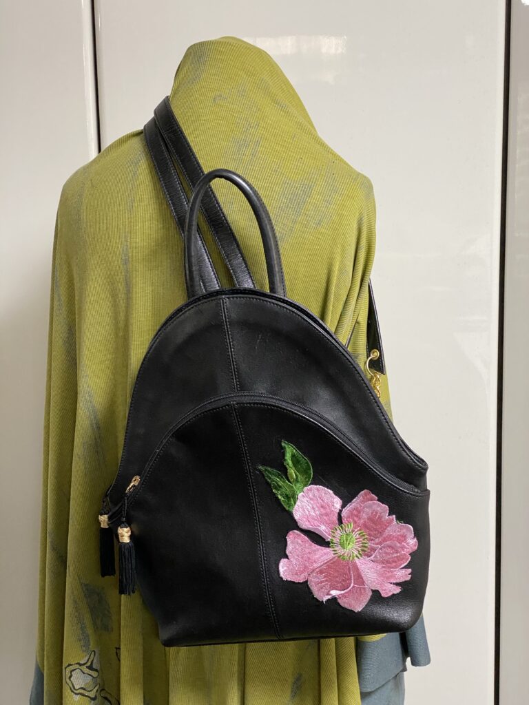 リックサックを作りました バッグ 2023.08.20 お出かけがしたい ルックサックを作ります 遠くへ お出かけしたいね 自分用にリサイクル皮を使って リックを作りましたSDGs BERUNIN9 wilcom4.5 刺繍データー ファスナースラーは、フリンジで 皮のミシン 皮スキ機道具です久々に使ってリックを背負って 新幹線で飛行機で海外へ 行きたいね