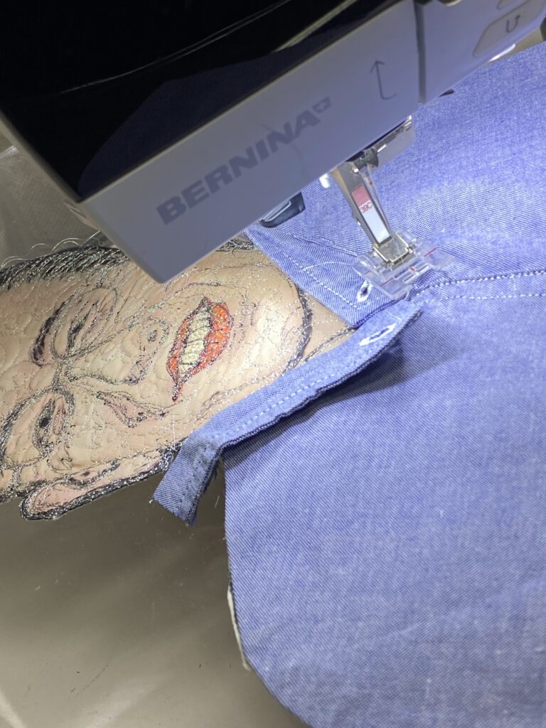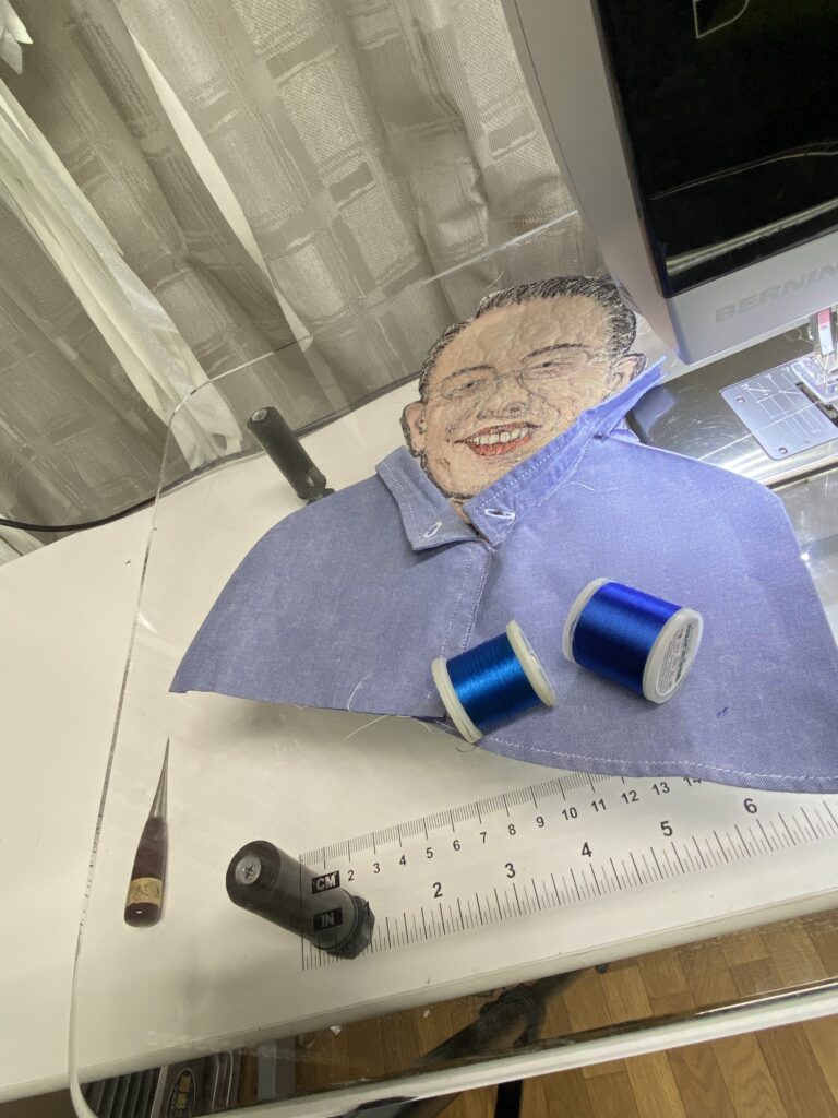 シャツは、Tさんが着ていたシャツを 頂いて キルトに縫い込みました