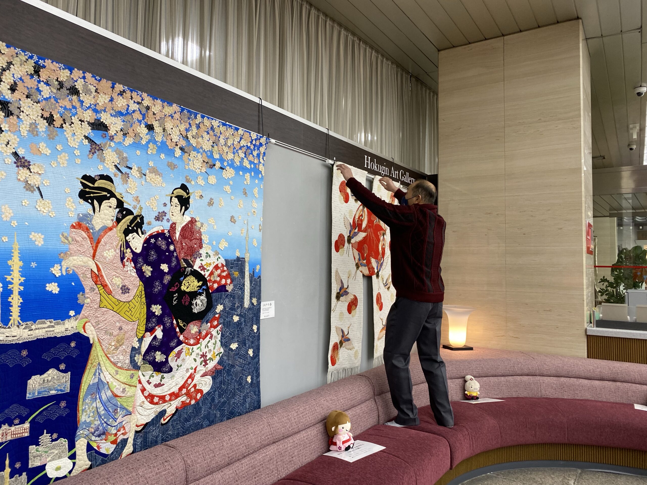 無事終了いたしました北陸銀行本展糸で描く布絵 ミシンキルト 2022.12.032022.12.04 12月2日本日無事1ヶ月の展示会が終わりました いろいろな方との出会に感謝致します 何より 朝乃山の10両昇進が嬉しいかぎりです 朝の山がんばれ エンペラーの龍を回しに描いて 作った等身大のキルト「頑張れ朝乃山」 を展示させて頂きました 無事1か月の展示会が終了致しました ありがとうございます