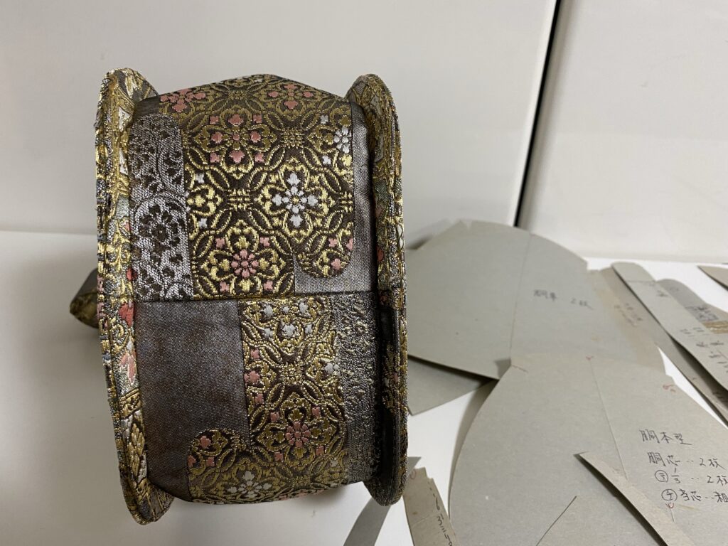 口金バッグ型紙 バッグ 2022.08.192022.08.20 バッグの型紙 このバッグの型紙 こんなに沢山 バックは型紙が大事です 表 裏 芯 増し芯 ウレタンの型紙 ポケットの型紙 一枚ずつ丁寧に 作ります プラチナの帯びの残り布で作ったので 布が少なく裏で継いで有ります お盆が過ぎたので 少しずつ新しいバッグを作って見ます 作り方を順次公開しますね バックの型紙 バックの底です 布がたりなくて 継ぎました底鋲も使わない形です